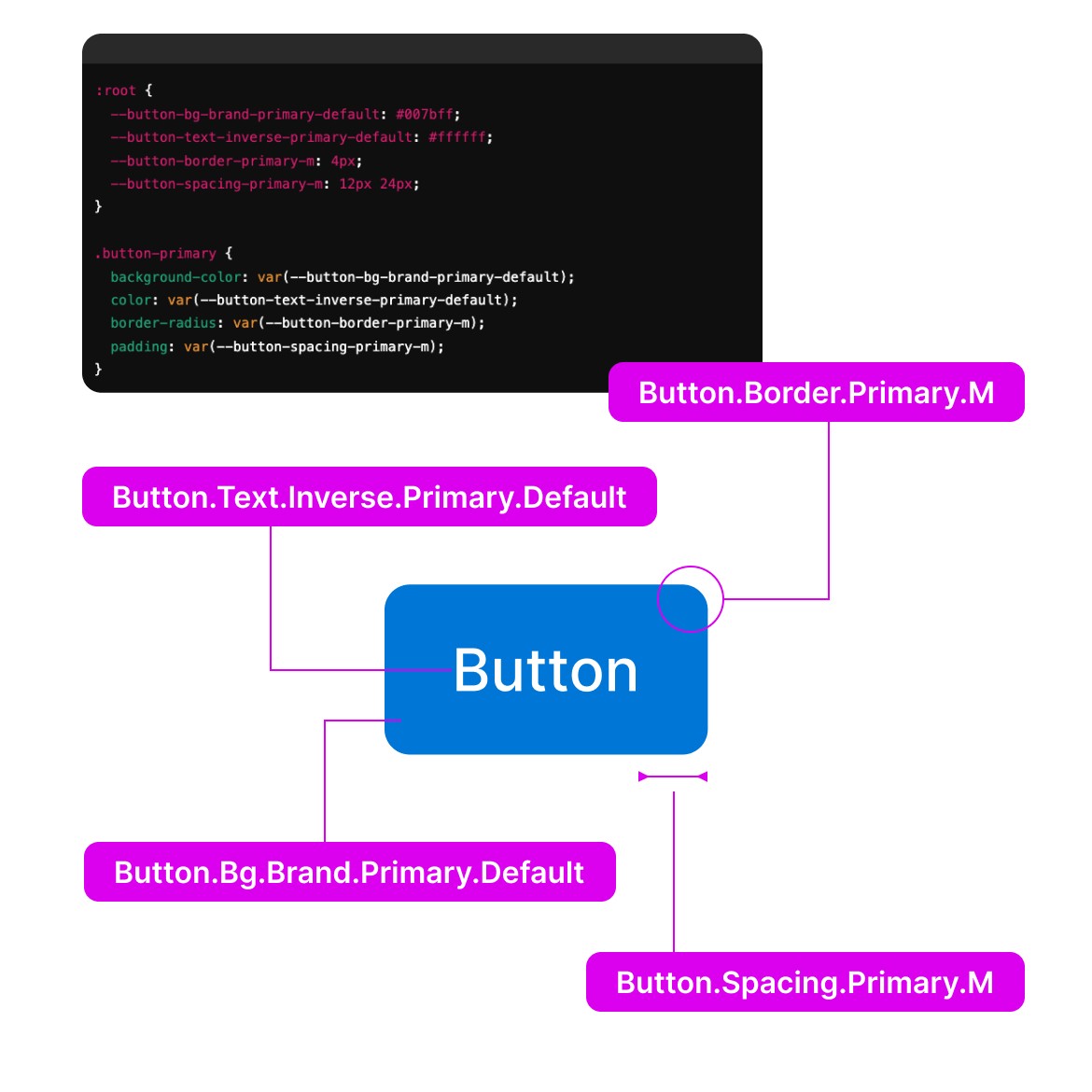 The design system was built based on a token driven approach, standardizing design properties for scalability and consistency. Design tokens were categorized as: