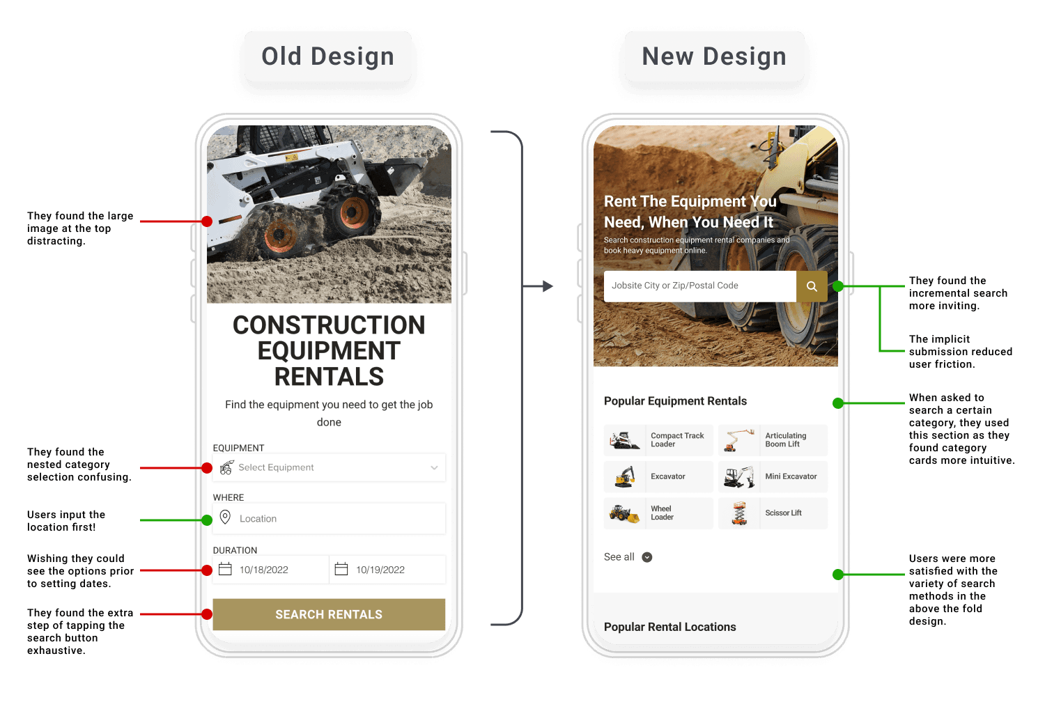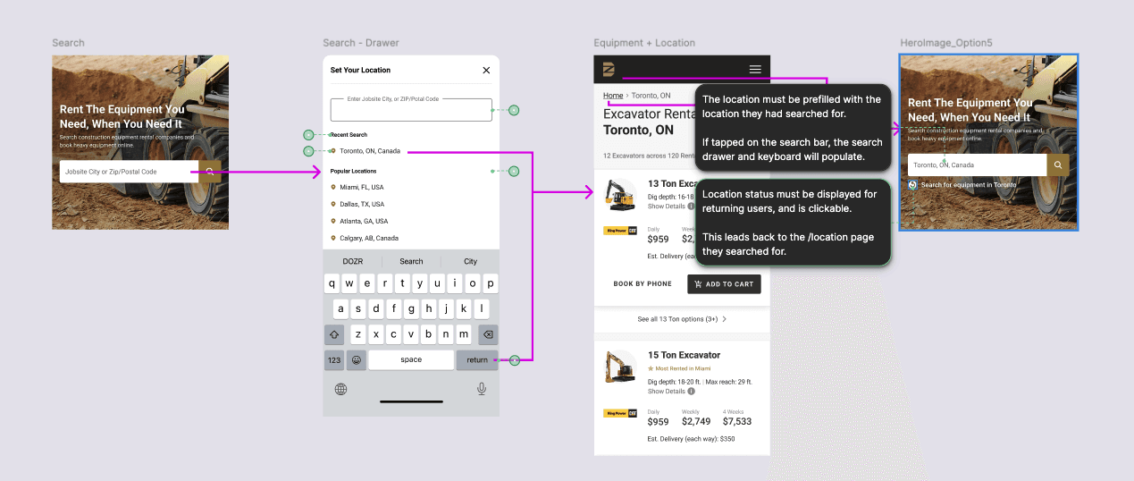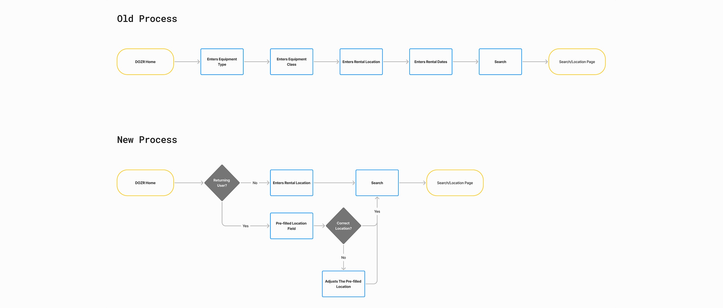 Mapping the existing user journey revealed critical drop-off points. Users encountered unnecessary steps when trying to search and a lack of visual guidance to complete their journey.
